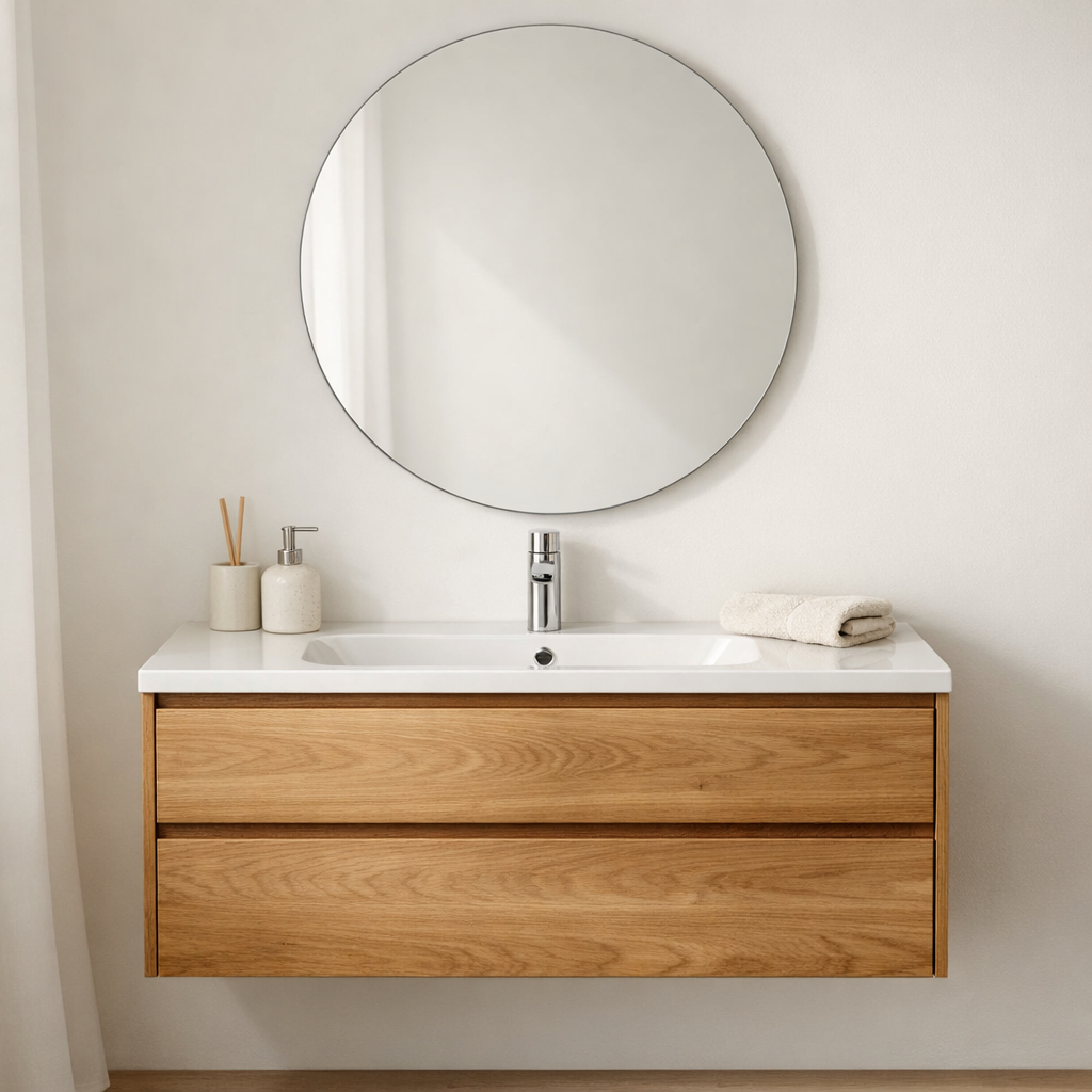 - Størrelse: Standard 50-60 cm bredde. Kompakt 35-45 cm til små bade. Dobbelt vask kræver min. 120 cm bredde.